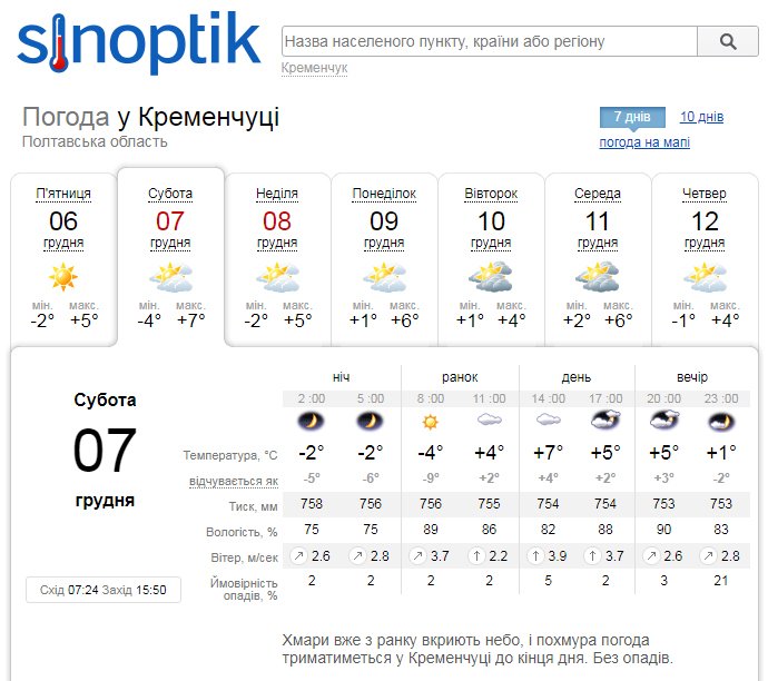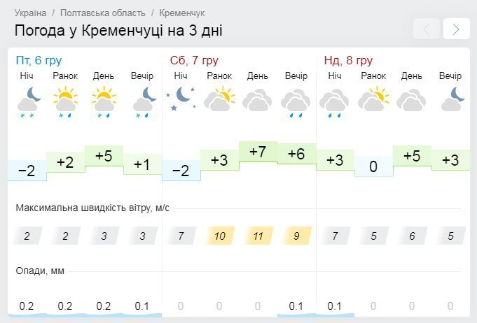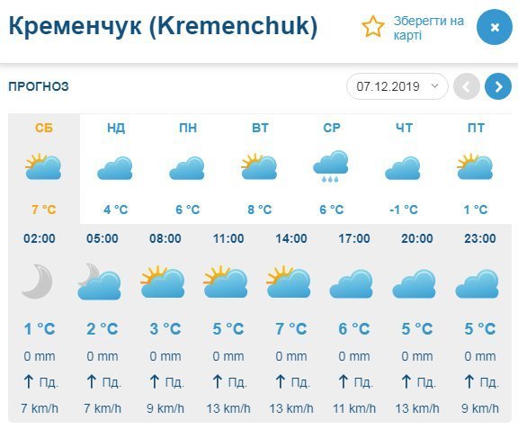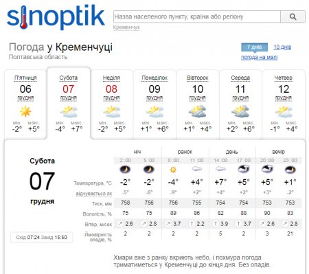 А от Sinoptik не передбачає дощів, проте пророкує похмуру погоду у Кременчуці на наступні два дні. Стовпчики термометрів покажуть від -4°С до +7°С.