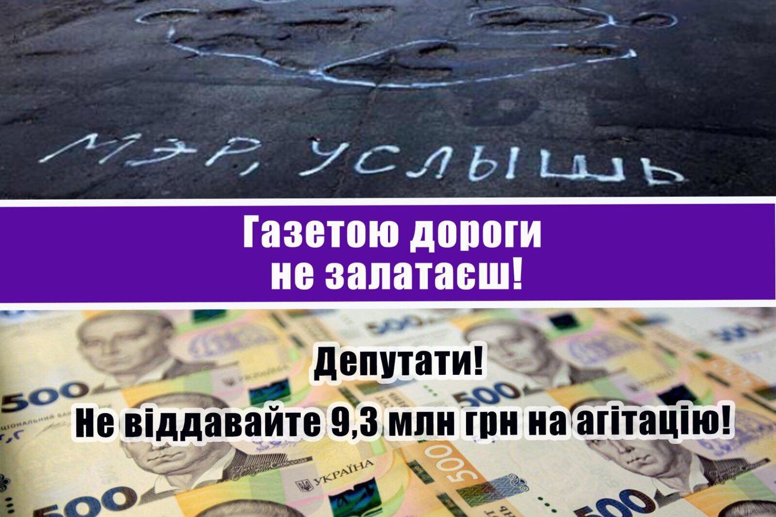 У 2018 році в місті не вистачало на дороги – аж так, що мерія влізла в борги, латаючи ями. У той же час зараз депутати міськради можуть проголосувати за витрачання 18 мільйонів гривень на агітацію та піар на майбутніх місцевих виборах – у вигляді підтримки комунальної телерадіокомпанії. І газети за 9,36 млн грн, яку раптом вирішила видавати КТРК.