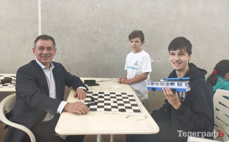 Олександр Коркішко – депутат Кременчуцької міської ради й багаторазовий переможець міських та обласних змагань з шашок. Поки Коркішко змагався з керівником сектору зв’язків з громадськістю «Укртатнафти» Сергієм Біленьким, за ними спостерігали діти.