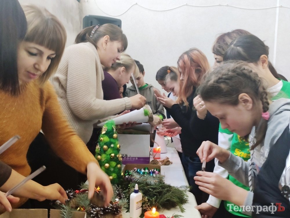 Крім спортивних змагань діти мали змогу створити новорічний настрій. Біля столів дорослі з дітьми готували новорічні вінки та ялинки з кульок.