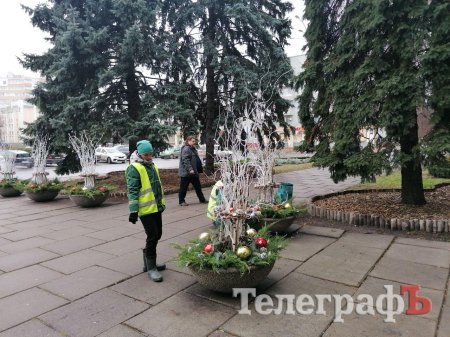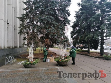 Комунальники Кременчука прикрасили мерію нашого міста до Нового року - біля входу у Кременчуцьку міську раду вони встановили новорічні прикраси.