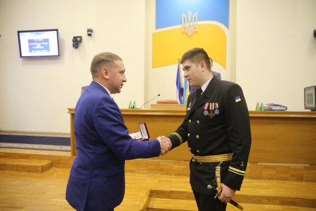 Сьогодні, 12 грудня, на засіданні сесії Кременчуцької міськради моряка Богдана Головаша нагородили почесним нагрудним знаком Полтавської обласної ради «За вірність народу України».