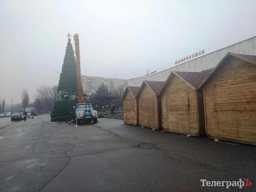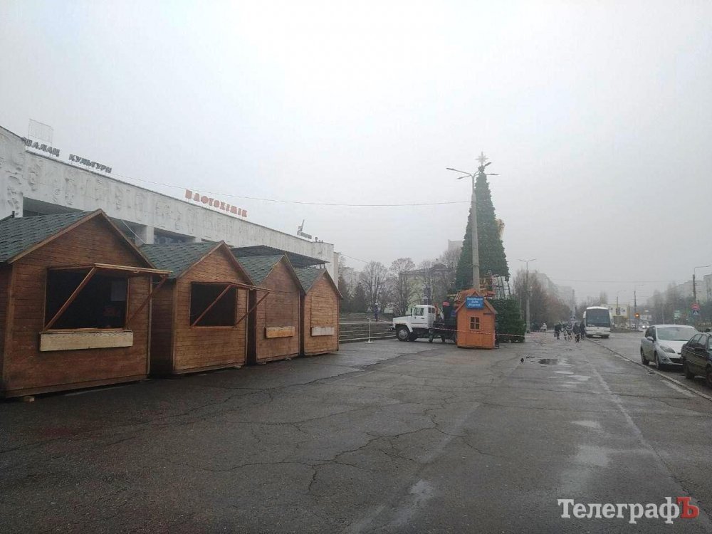 Навколо «дерева» вже розмістили кілька дерев’яних будиночків, в яких продаватимуть різні напої та наїдки. Також змонтували сцену.