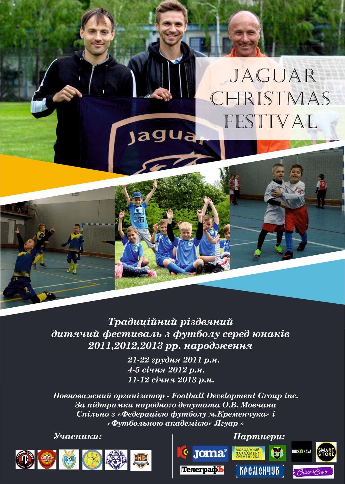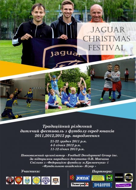 У Кременчуці триває футбольний турнір Jaguar Christmas festival - традиційний різдвяний дитячий фестиваль з футболу серед юнаків 2011, 2012, 2013 років народження. Змагання проходять у залі КДЮСШ №2 (вул. Залудяка, 5). У нашому місті змагатимуться команди з Харкова, Конотопа, Полтави, Кропивницького, Горішніх Плавнів, Бахмача та Дніпра.