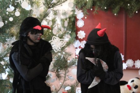 У святково прибраному залі хлопці подарували присутнім театралізовану виставу про чудеса, які творив святитель Миколай. Ролі казкових героїв виконували співробітники колонії та вихованці – це і царівна Зима, Святий Миколай та янголята, сніжинки та чортенята.