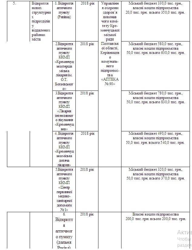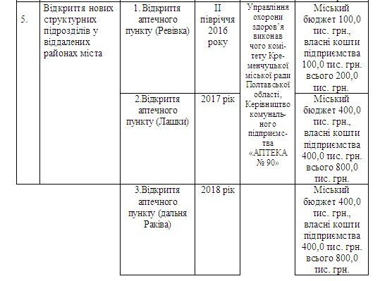 И аптеку на дальней Раковке вернули в программу. Только в очень «урезанном» виде. Теперь на её открытие выделяли не 800 тысяч, а всего 200. И эти 200 тысяч должна была выделить из собственных средств коммунальная аптека №90. А в 2017-м в аптеке №90 сменилось руководство и она уже перестала быть прибыльным коммунальным предприятием (руководителя аптеки менял мэр Кременчуга Малецкий).