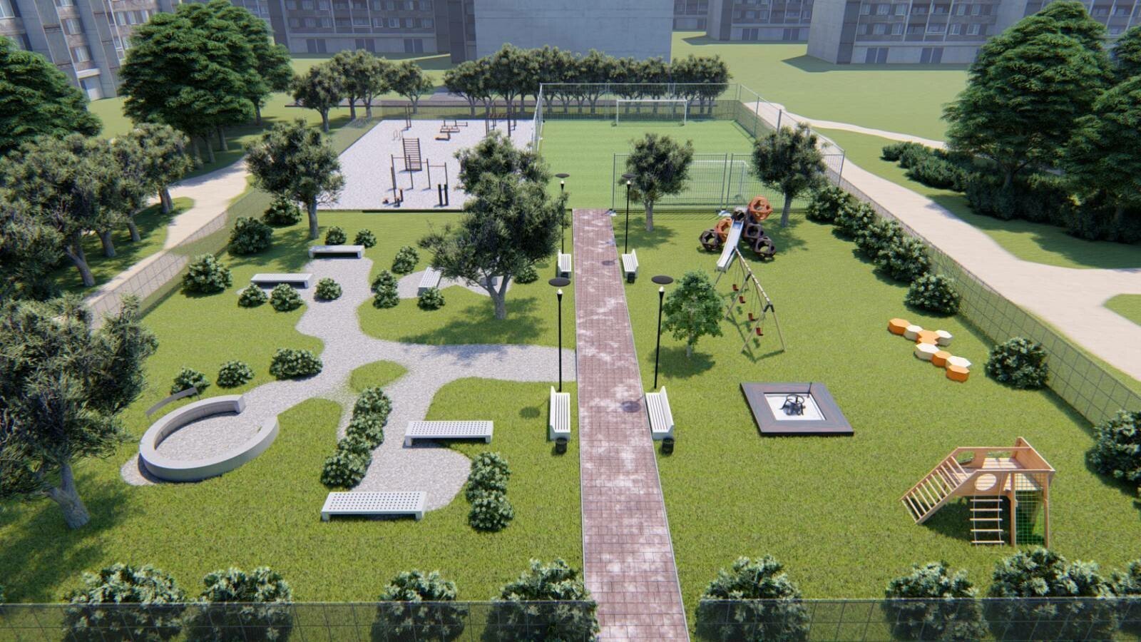 Тому пропонується облаштувати двір новим дитячим майданчиком, спортивними та елементами для воркауту, це принесе багато користі мешканцям мікрорайону і дозволить виховувати підростаюче покоління спортивним і розвинутим.