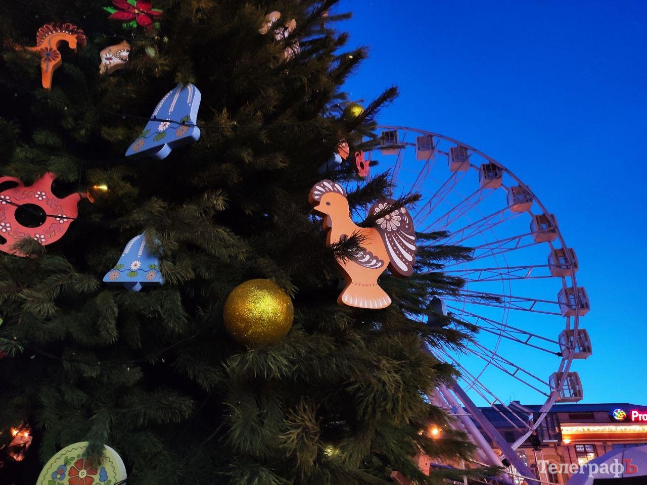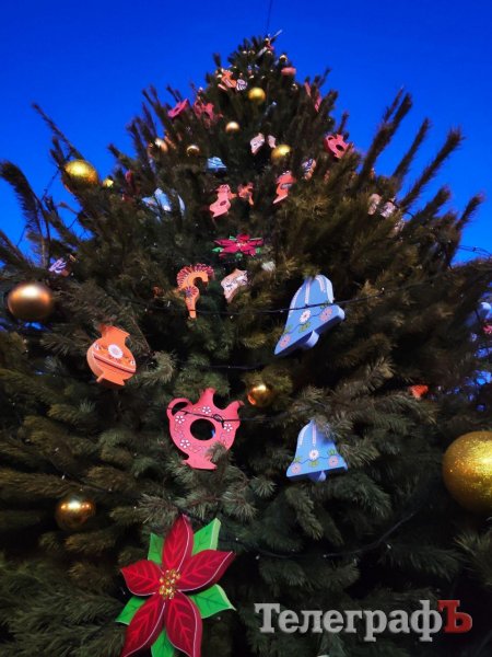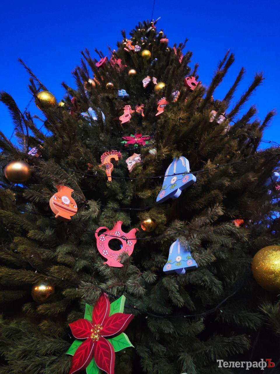 На ялинці 500-700 прикрас і 3 кілометри гірлянд. Поруч стоять великі глечики, через які можна проходити.
