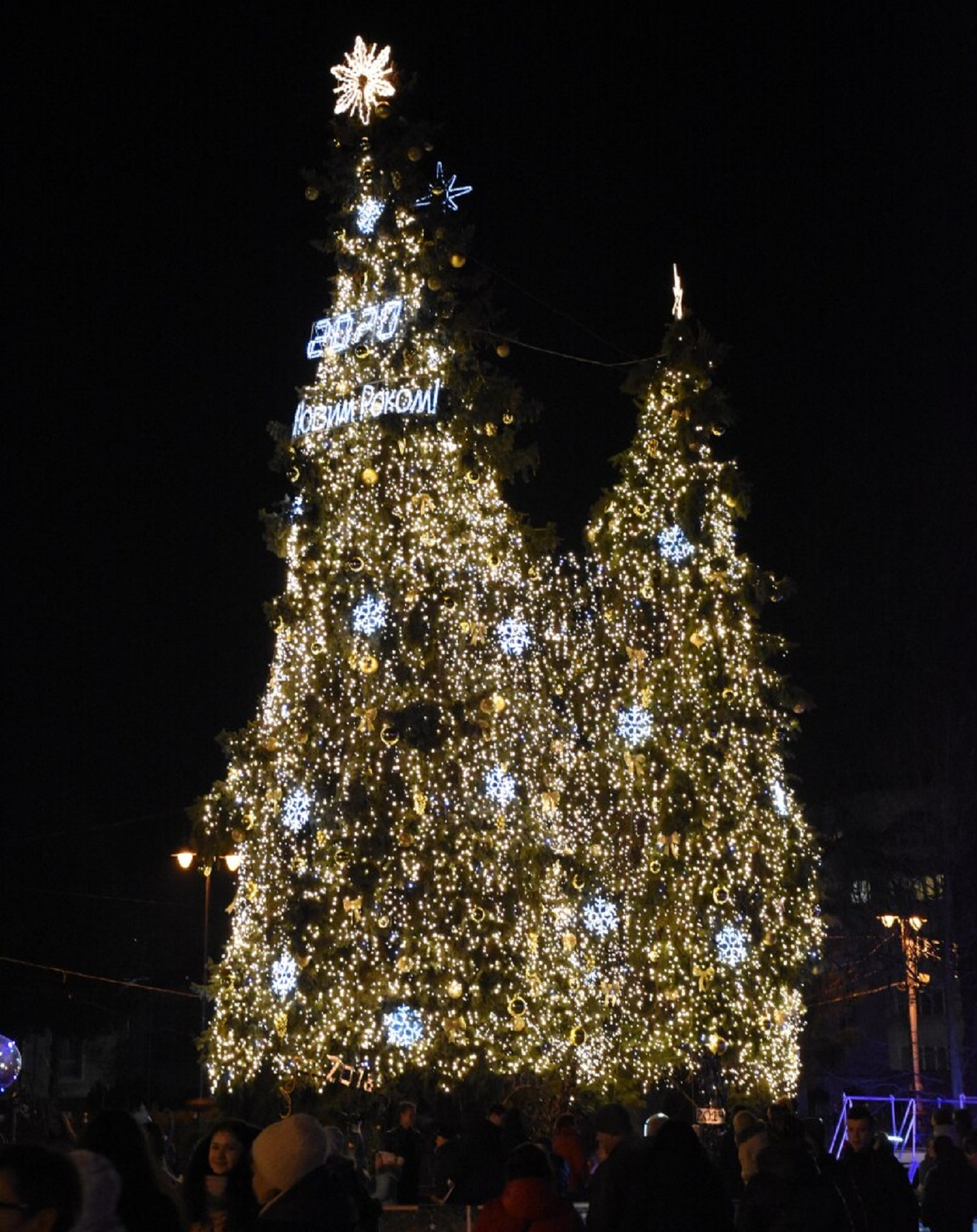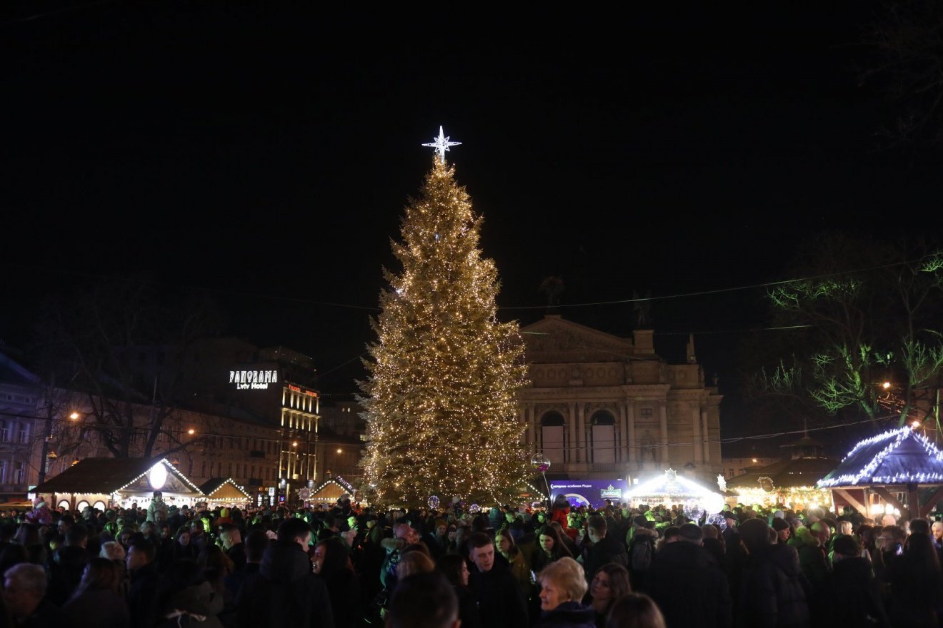 У Львові різдвяна ялинка традиційно розміщена перед оперним театром, її розмір – 17,5 метрів. Цьогоріч її майже не прикрасили іграшками, а зробили акцент на освітленні. Використали минулорічну ілюмінацію. Цікаво, що місто ялинку не купувало, деревце подарувала приватна фірма. Новинкою у цьогорічному прикрашанні міста до новорічно-різдвяних свят є два 8-метрові ангели, які є аналогами лондонської святкової ілюмінації.