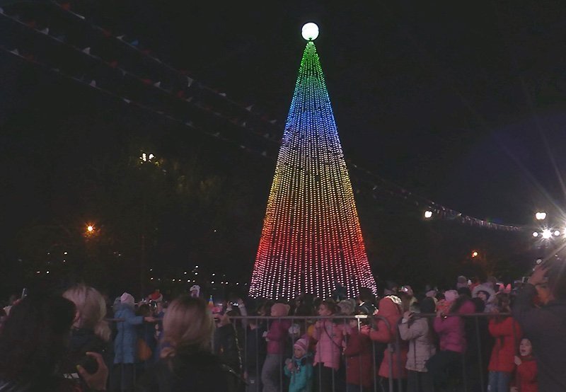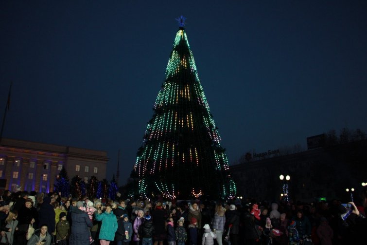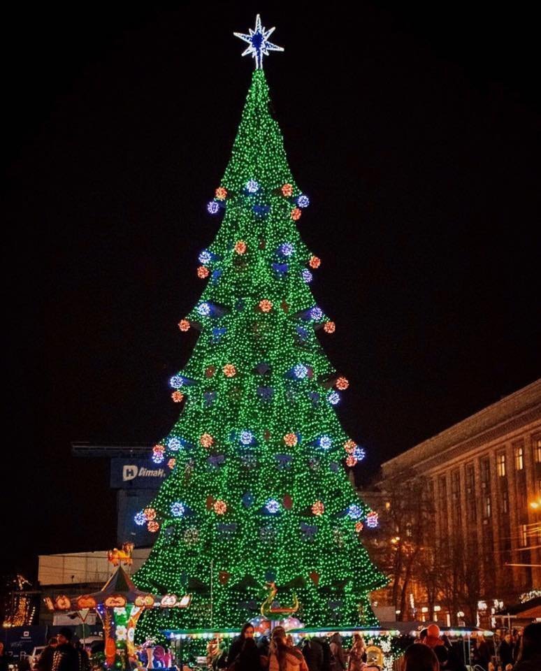 У Харкові традиційно найвища ялинка в Україні – її висота 40 м 49 см. Цього року конструкція ялинки не змінилася, але з’явилася нова світова ілюмінація.