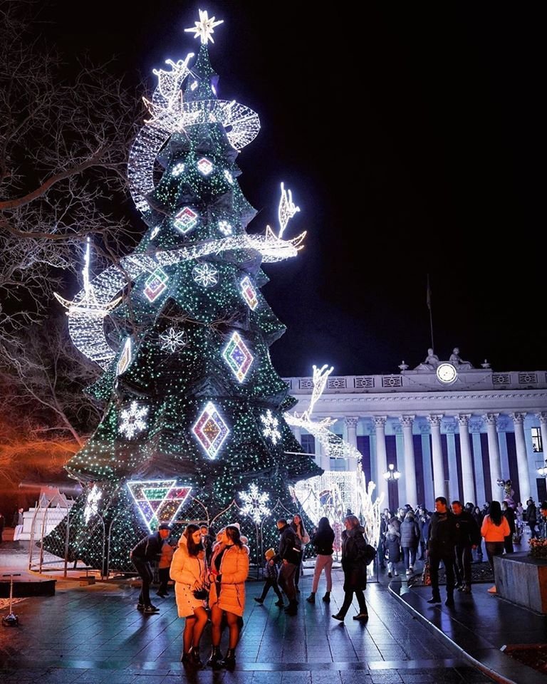 Висота одеської ялинки – 20 метрів, діаметр основи – 9 метрів. Вона складається з металевого каркаса і штучної хвої італійського виробництва. Ялинку прикрасили гірлянди і дюролайт (прозорий шнур зі світлодіодами), загальна протяжність яких перевищує 4 км. Світлодіодів – 100 тисяч штук. Вони світяться трьома кольорами: зеленим, синім і золотистим.