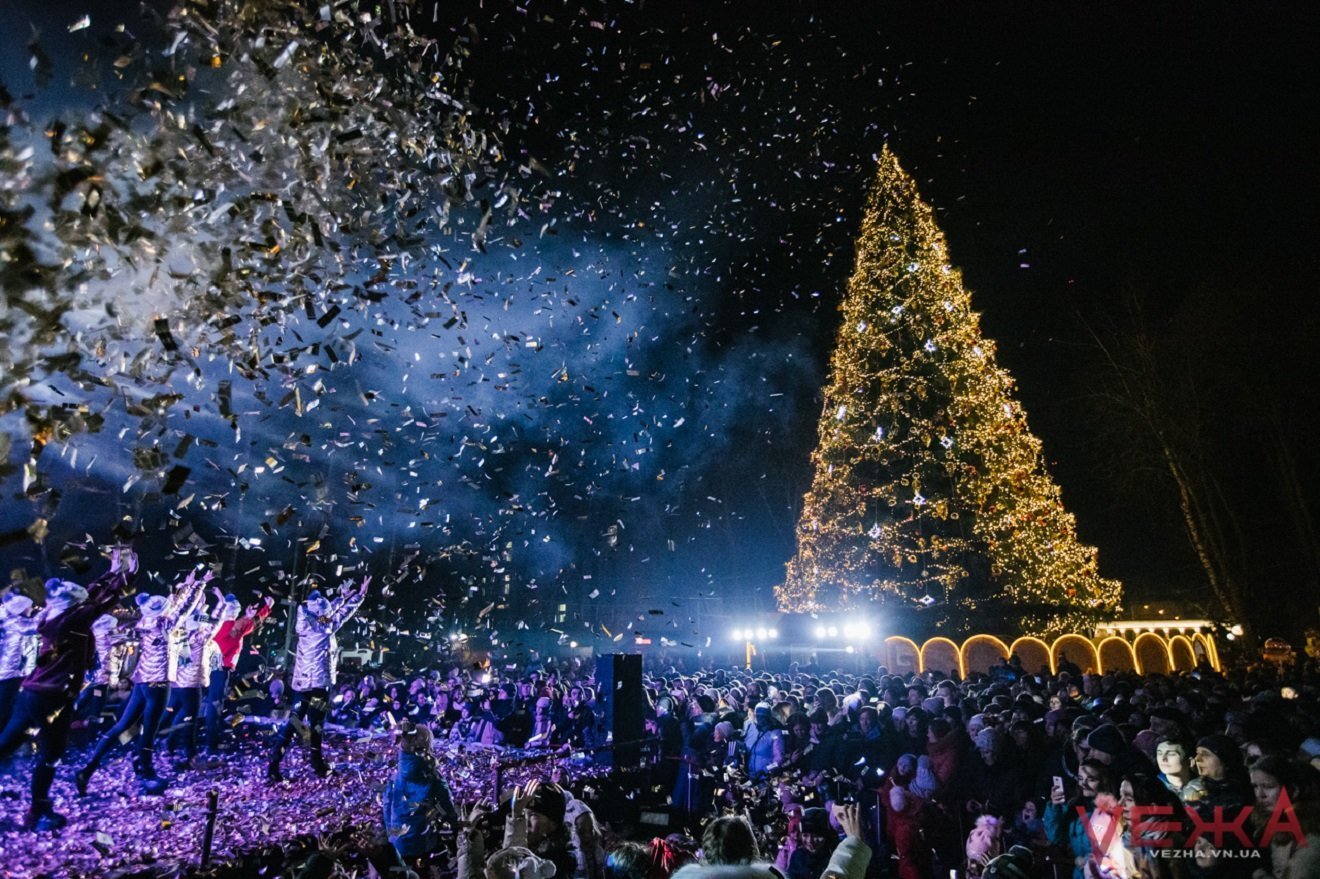 Традиційно головна ялинка Вінниці – у Центральному парку. Вона уже потрапила до Книги рекордів України в номінації «найвища металоконструкція у формі ялинки з рухомими механізмами». Як повідомив представник Книги рекордів, її висота складає 29 метрів, а вага – понад 75 тонн.