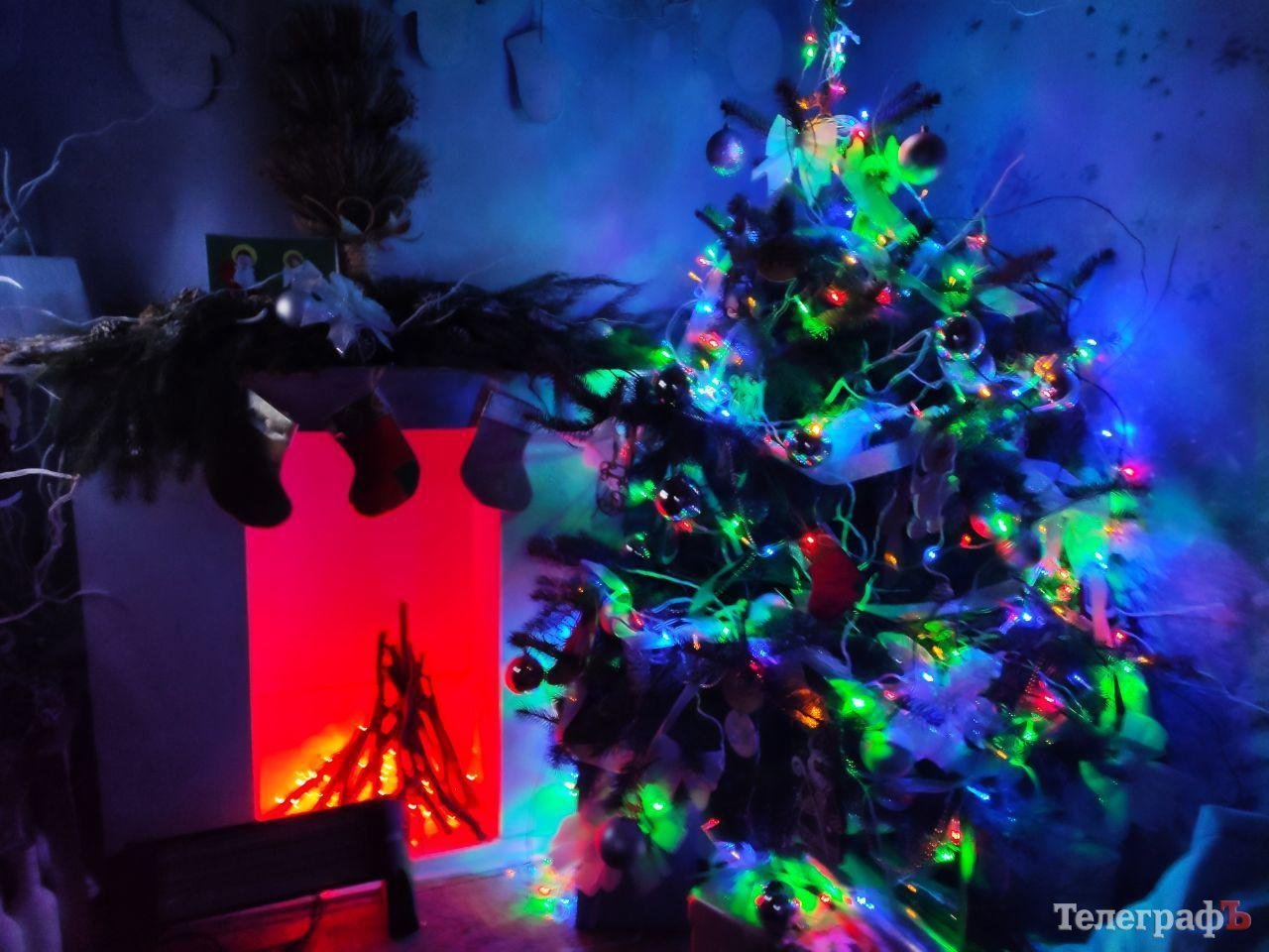 Місце для листів поруч з дідухом, яке осяяне новорічними вогниками