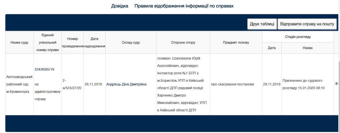 Сьогодні, 15 січня, о 8.10 мало відбутися судове засідання щодо позову народного депутата Юрія Шаповалова. Нагадаймо, нардеп Шаповалов вимагає через суд скасувати постанову, складену на нього за порушення правил дорожнього руху патрульним Борисполя.