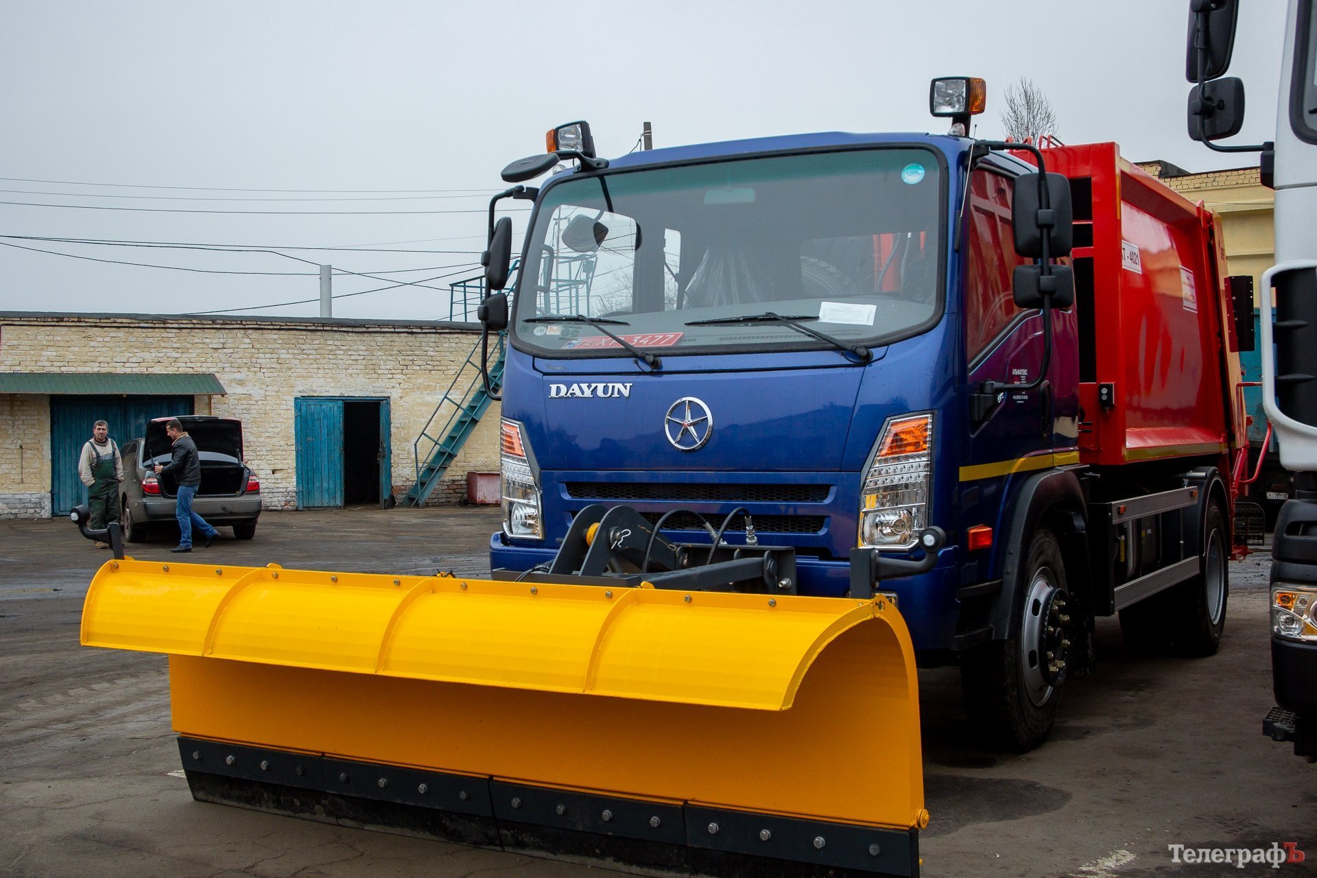 Це китайський автомобіль марки DАYUN. Невелика вантажівка з бункером 6 куб м призначена для вивезення сміття у неблагоустроєному житлі. Вартість — 2,5 млн грн (відповідно до угоди про закупівлю).