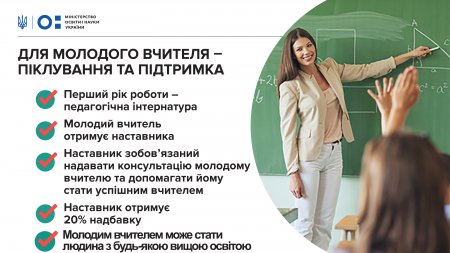 Перший рік роботи молодий вчитель проходитиме педагогічну інтернатуру. В її межах він чи вона отримає наставника, який буде зобов’язаний надавати консультації молодому фахівцю та допомагати йому стати успішним вчителем. Наставник отримуватиме додаткову надбавку у 20%.