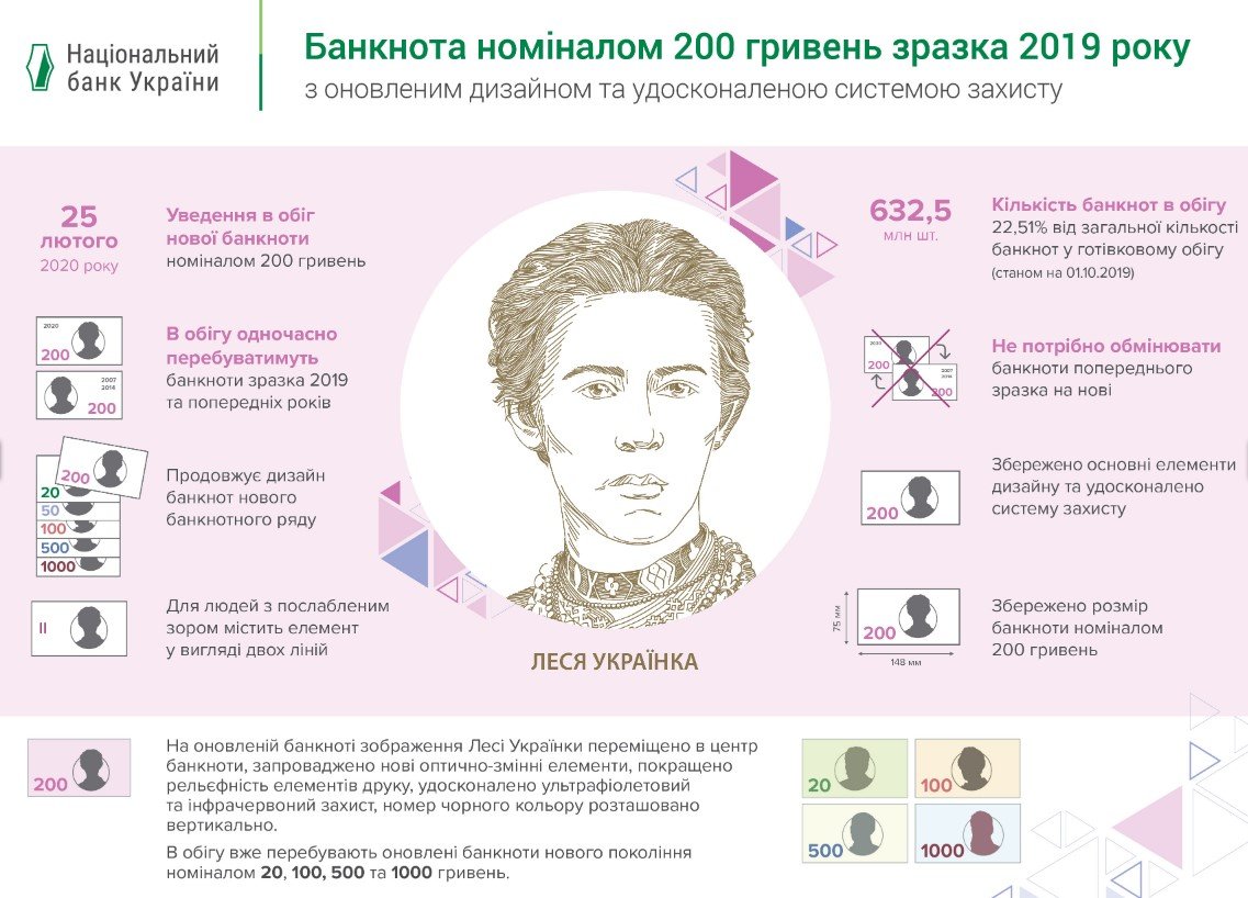 25 лютого Національний банк ввів в обіг нову банкноту номіналом 200 гривень. Про це йдеться в повідомленні на сайті НБУ.