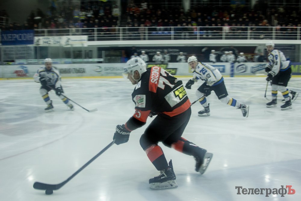 Поступово гра почала вирівнюватися, а херсонські «щуки», відчувши смак голу, все більше і більше почали докучати воротам «городян». Але ближче до кінця першого періоду кременчужани перехопили ініціативу, і за 36 секунд до сирени точний кидок Александрова вивів господарів майданчика вперед – 2:1.