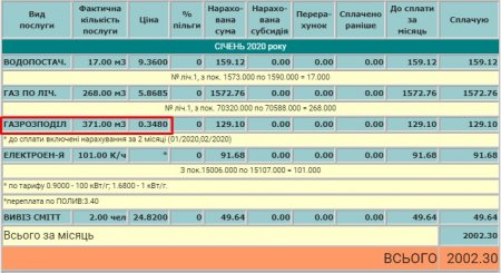 Кременчужани за січень отримали «дві платіжки» за газ. Фактично квитанція, сформована фірмою ВАС, яка обслуговує комунальні платежі – одна. Але плата за газ розділена на два окремі рядки: «газ по ліч.» та «газорозподіл». У рядку «газ по ліч.» - обсяг (у кубометрах), реально спожитий у січні. У рядку «газорозподіл» інша цифра обсягу. При цьому (зверніть увагу) – кубометри газу за розподіл виставлені за два місяці (січень та лютий).