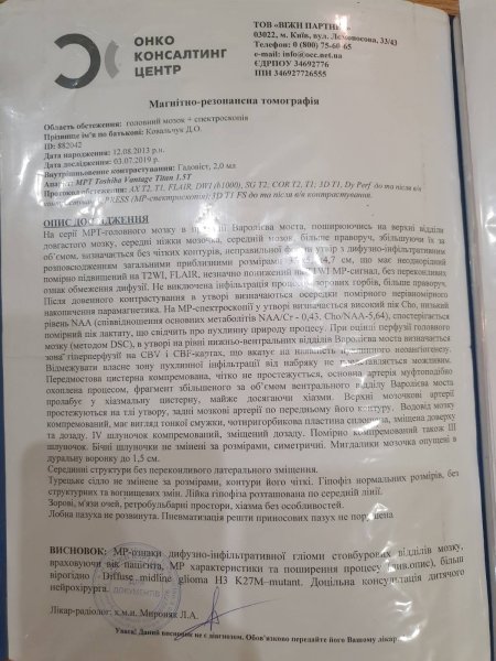 Молода мама з Кременчука Олеся Ковальчук виховує двох синів, влітку до родини прийшла біда - захворів менший син Дмитро. Мама Олеся розповіла «Телеграфу», що влітку Діма застудився, лікарі призначили антибіотики й після цього хлопчик став погано себе почувати. Кременчужанка, готуючи дитину до школи помітила, що у нього порушилася мова та координація рухів, ще й Діма скаржився на головний біль.