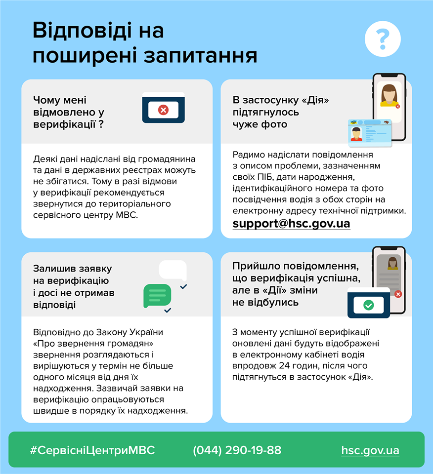 З моменту успішної верифікації оновлені дані будуть відображені в електронному кабінеті водія протягом 24 годин, після чого підтягнуться в додаток «Дія».