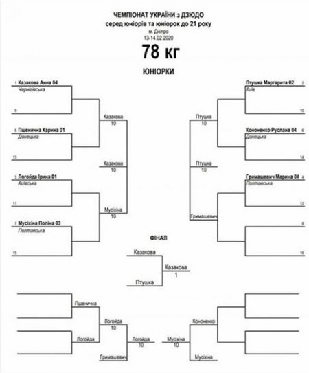 Бронзову медаль чемпіонату виборола дзюдоїстка СК «Кремень Дзюдо» Поліна Мусіхіна, яка змагалася у ваговій категорії 78 кг. Наша спортсменка перемогла киянку Ірину Логойду, а у другій сутичці поступилася Анні Козаковій з Чернігівщини. На шляху до бронзи Поліна перемогла Руслану Кононенко з Донеччини та Ірину Логойду, яку перемогла у першому поєдинку.