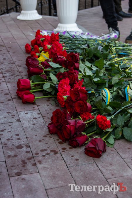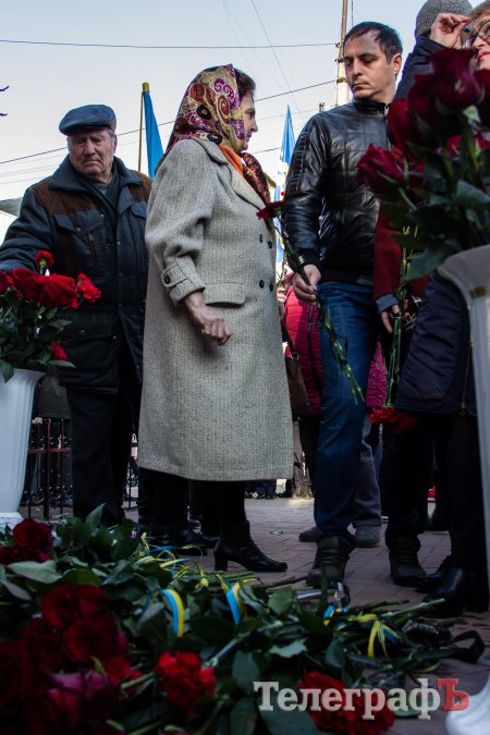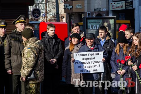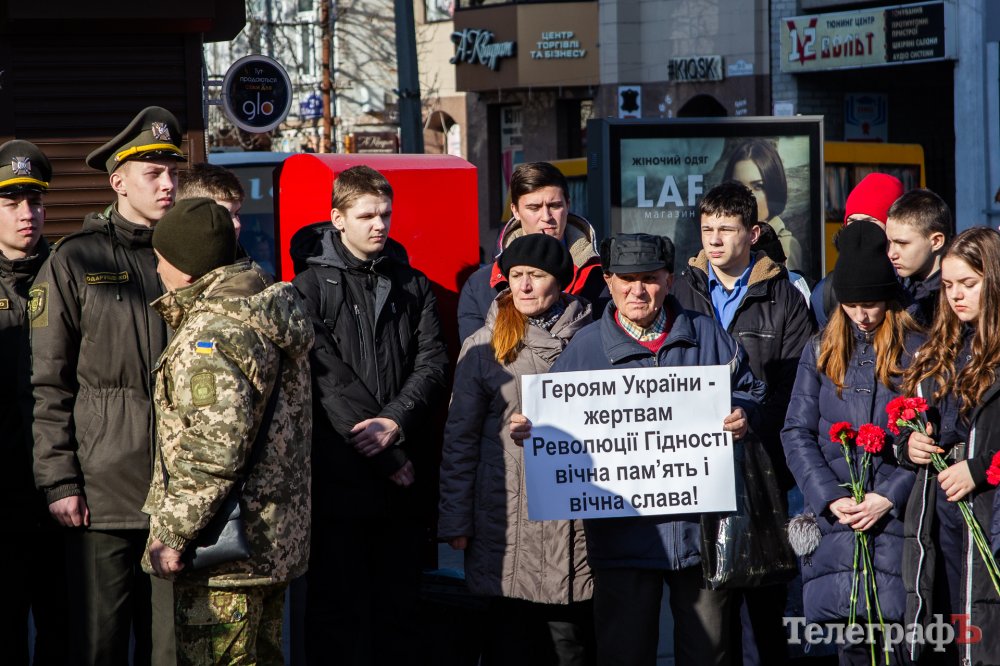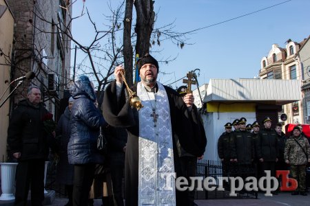 Панахиду за загиблими провів настоятель Свято-Миколаївського собору Володимир Макогон, а кременчужани поклали квіти до підніжжя барельєфу Герою Небесної сотні.