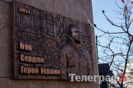 Символічно, що на перехресті вулиць Ігоря Сердюка та Небесної сотні, саме 20 лютого відкрили барельєф на честь кременчужанина Ігоря Сердюка. Наш земляк загинув 18 лютого у Києві під час Революції гідності. Ігор майже з перших днів їздив на майдан повертаючись додому до коханих дівчат: дружини Ірини та доньки Олександри.