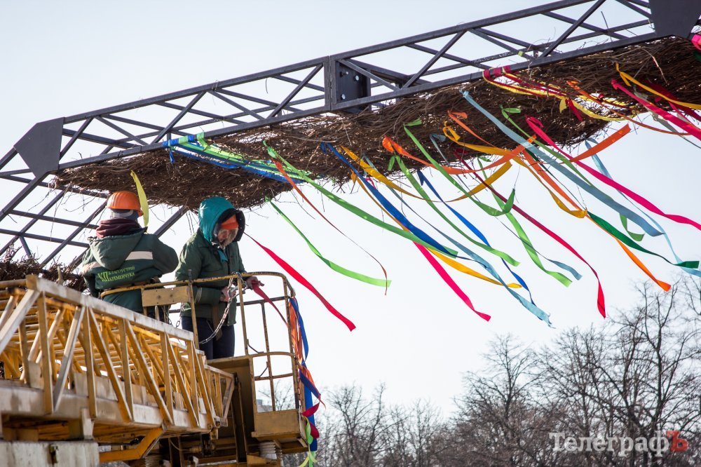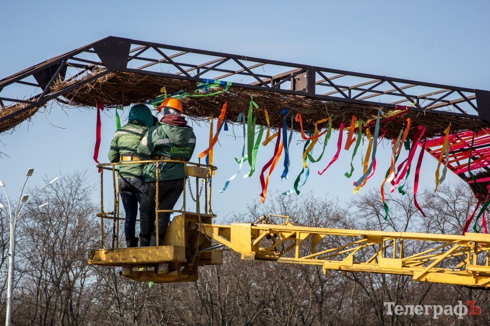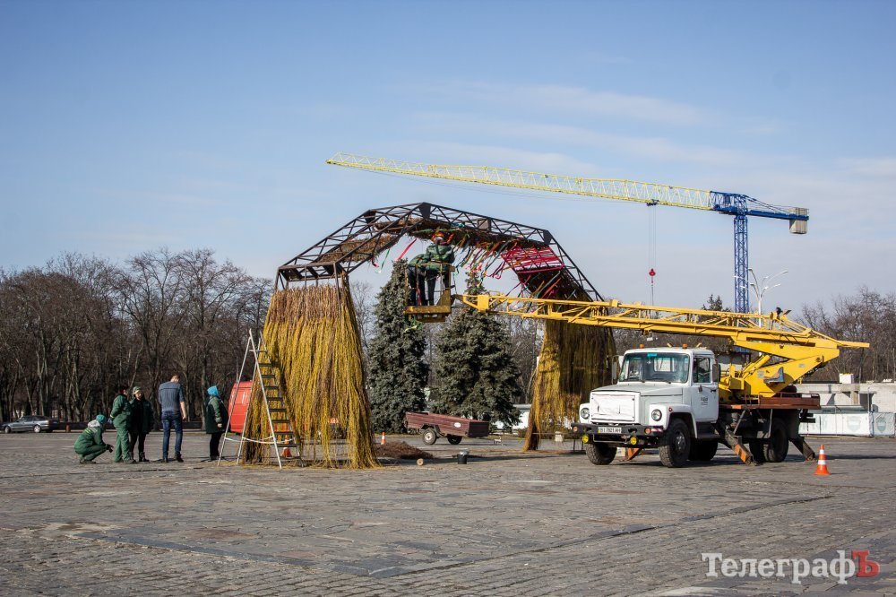Працівники «Благоустрою Кременчука» прикрашають арку: на ній на зміну хвої та новорічним кулькам, які красувалися тут взимку, з’являються вже весняні мотиви – гілочки верби та різнокольорові стрічки. Скоро на площі встановлять містечко, де частуватимуть кременчужан під час свята.