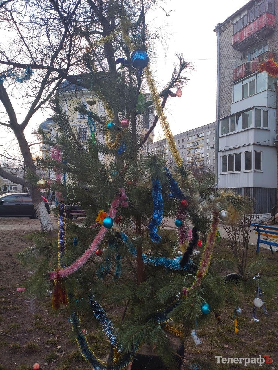 У Кременчуці за тиждень до весни ще залишилася новорічна ялинка. Новорічна красуня була помічена в одному з дворів нашого міста. Як розповіли «Телеграфу» дітлахи, які мешкають на вул. 29 Вересня, вони щороку прикрашають ялинку. Вони по іграшці разом з сусідами збирають новорічне деревце.