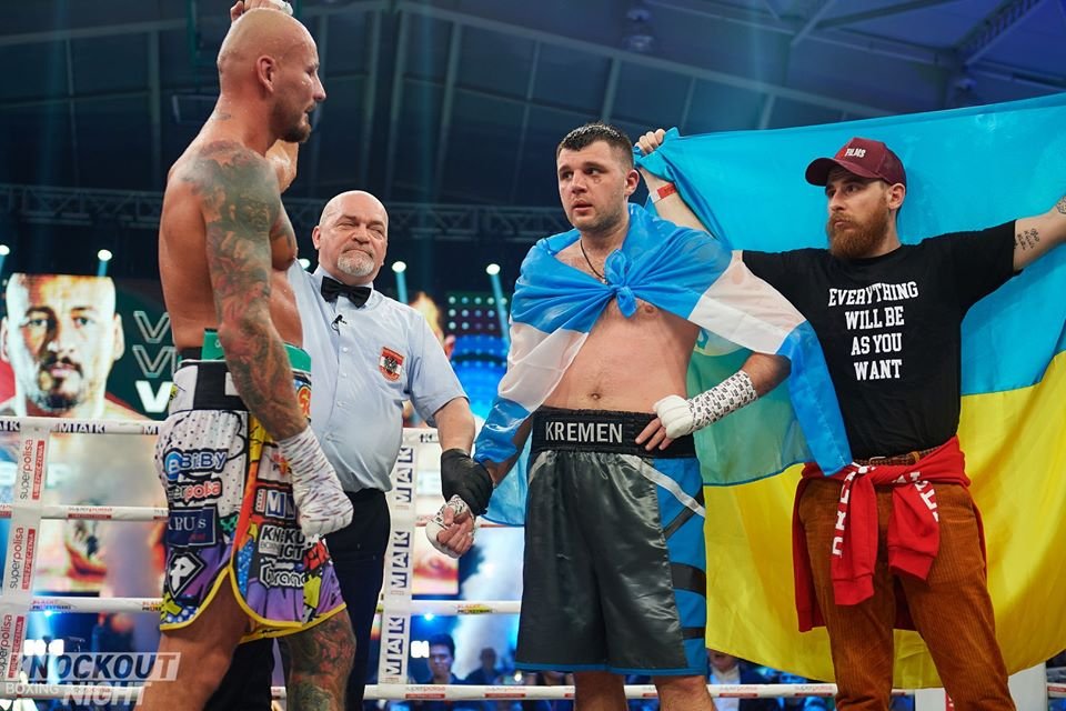Сьогодні Сергію Радченку, огорнутому в прапор Кременчука, на польському ринзі не підняли руку. Польські вболівальники після бою підтримали Сергія, адже по справедливості цей бій був за ним, проте судді вирішили інакше.