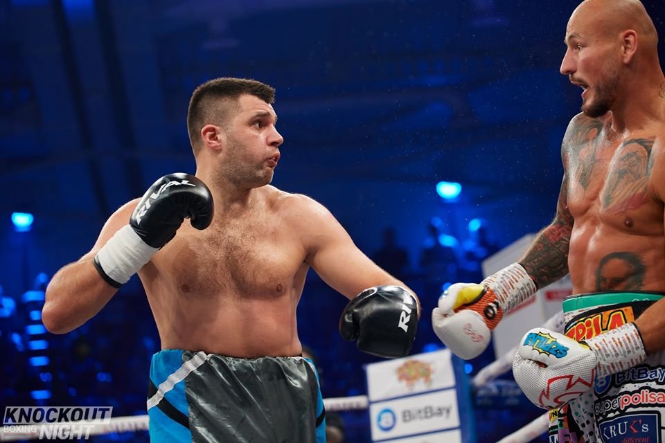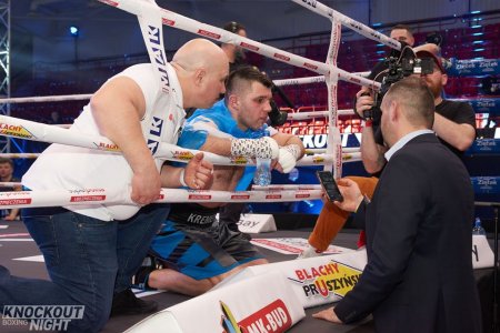 Артур Шпилька повернувся у важку вагу з супервагової категорії. Поляк активно почав бій, проте наш боксер давав гідну відсіч. Сергій у 3-му раунді лівим боковим відправив суперника в нокдаун. Хвиля овацій від глядачів ледь не знесла ринг.