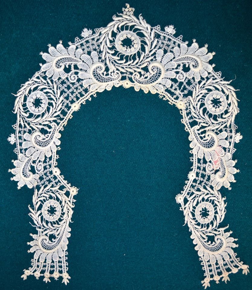 Жінки із родин середнього стану, де ще зберігалися строгі православні канони, не поспішали купувати або шити собі нові наряди. Втім, у цьому випадку виручало мереживо, вив’язане своїми руками. І от уже старе плаття перетворювалося на нове з білосніжним декоративним комірцем, або манжетами, або накладками на плечі і декольте.
