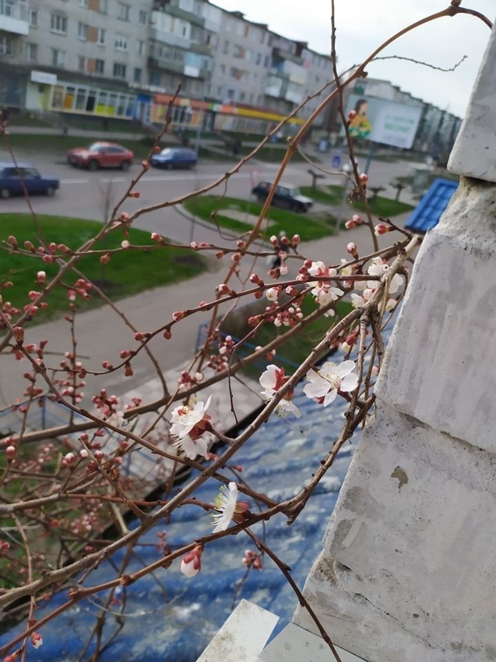 У Горішніх Плавнях розквітло абрикосове дерево. Світлину, на якій видно гілку з абрикосовим цвітом, опублікувала Ірина Берновек.