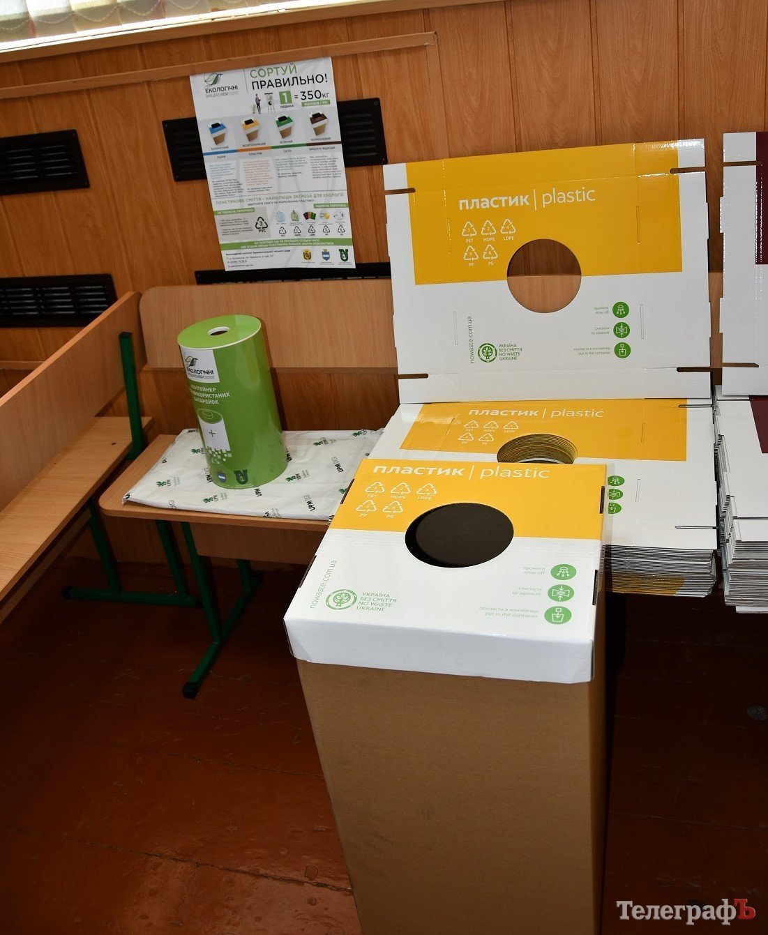 У школах Кременчука підвищуватимуть екологічну грамотність та свідомість не на словах, а на практиці. Минулого тижня контейнери для різних видів відходів представники ПрАТ «Кременчуцький завод технічного вуглецю» на чолі з його директором Вячеславом Яворським передали у школу №26. Звідси контейнери розподілять по інших школах із розрахунку по одному контейнеру на кожен вид корисних відходів: папір, пластик, скло і по два – на залишкове сміття. Стоятимуть вони у приміщеннях (як урни). Зокрема, у школі №26 їх розмістять у вестибюлі, поряд із тематичним плакатом, який залучатиме до сортування сміття. Також кожна школа отримає невеликі спеціальні бокси для відпрацьованих батарейок.