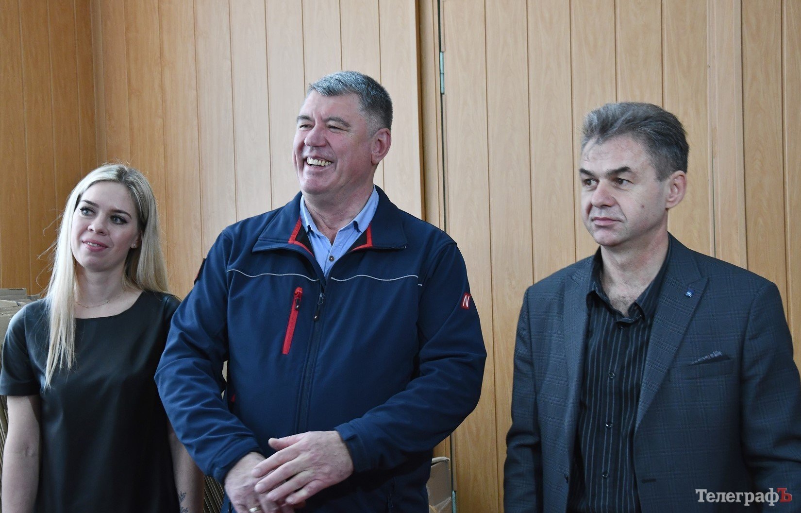 Еколог підприємства Наталія Макаренко, директор КЗТВ Вячеслаав Яворський (у центрі) та директор школи №26 Володимир Сакун під час презентації проєкту