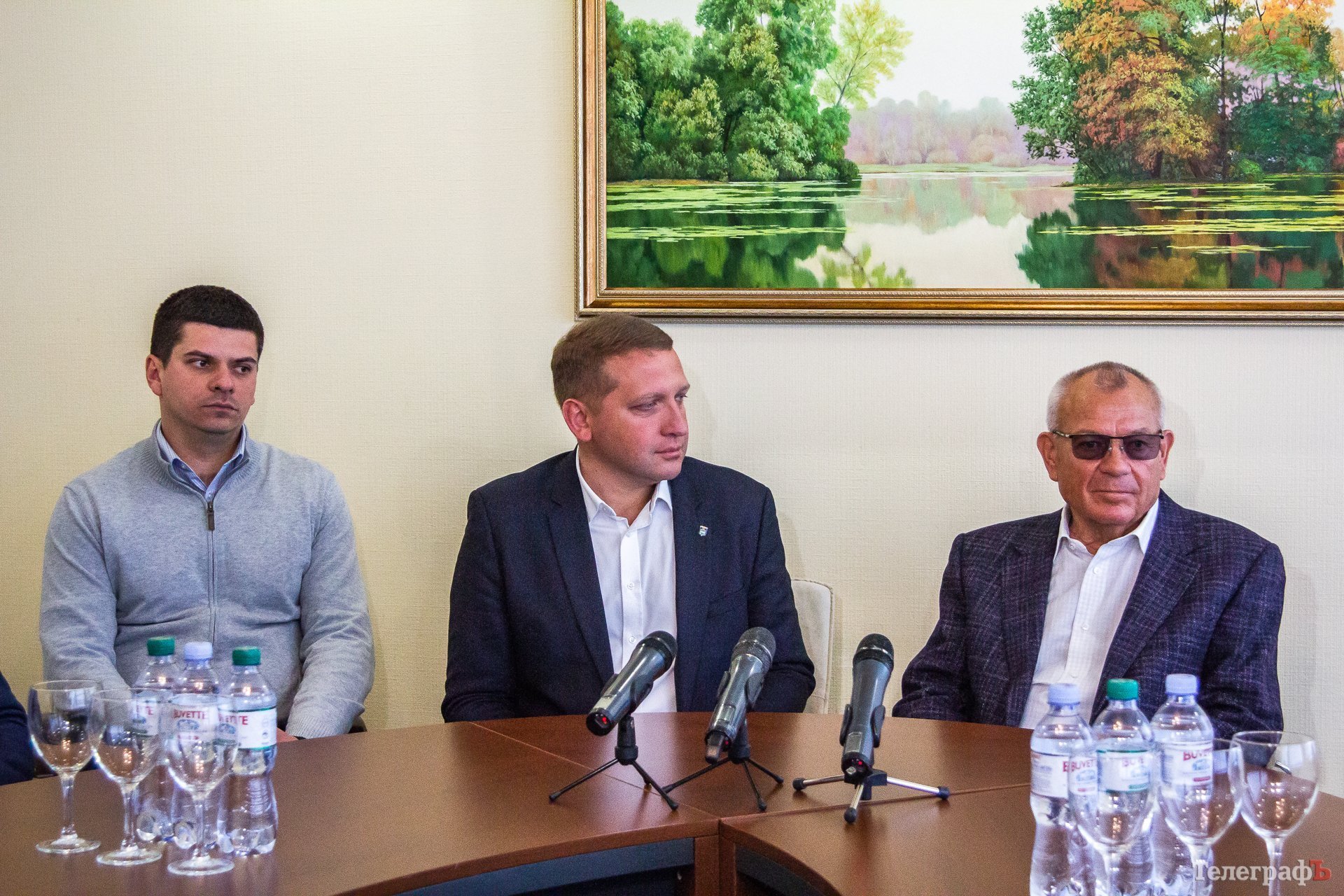 На фото: віцемер Руслан Проценко, міський голова Віталій Малецький та Почесний громадянин Кременука та СК «Легіон» Володимир Матицин