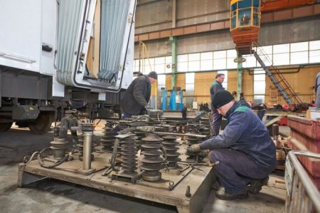С вагонов сняли тележки и отправили на ремонт. Тележки промежуточных вагонов отправлены на участок по изготовлению ходовых частей транспорта социального назначения для их ревизии и ремонта. Тележки головных вагонов разобраны, а рамы отправлены в сборочно-сварочный корпус для их осмотра и ревизии.