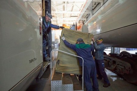 Что касается работ непосредственно на Крюковском заводе, то сейчас уже расцепили вагоны. Шесть вагонов уже помыли в новой моечной камере. Некоторые из них отправили на покраску в малярные камеры - полностью будет перекрашено подвагонное оборудования и все поверхности под вагонами.