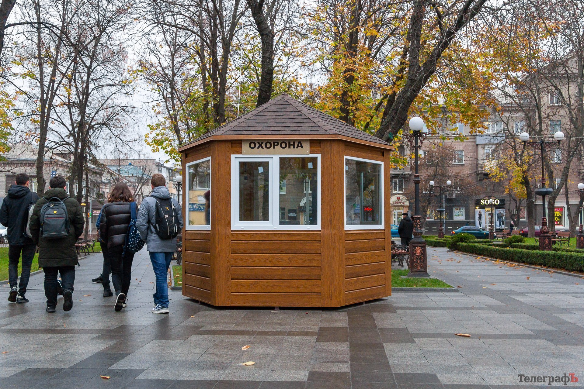 На в’їзді поставлять дерев’яний будинок, який на час новорічних свят був біля фонтану. Тепер будинок функціонуватиме не для «вартових новорічного свята», а для «вартових коронавірусу».
