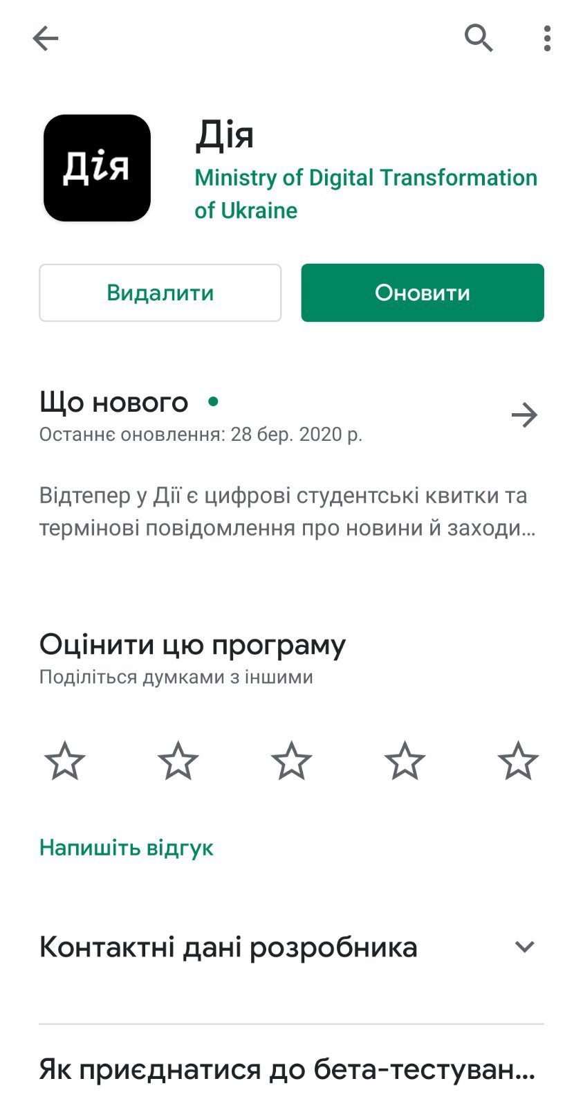 Завдяки оновленню додатку «Дія» в особистому кабінеті можна знайти не лише водійське посвідчення та техпаспорт, а й студентський квиток. Крім того, у застосунку тепер є новини щодо карантинного режиму в Україні.
