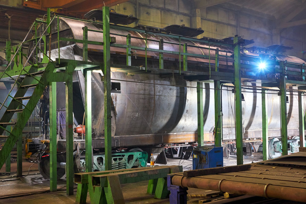 7 апреля на Крюковском вагоностроительном заводе с потока по изготовлению грузовых вагонов сборочно-сварочного корпуса сошел 1000-ый вагон для перевозки минеральных удобрений модели 19-7017-05.