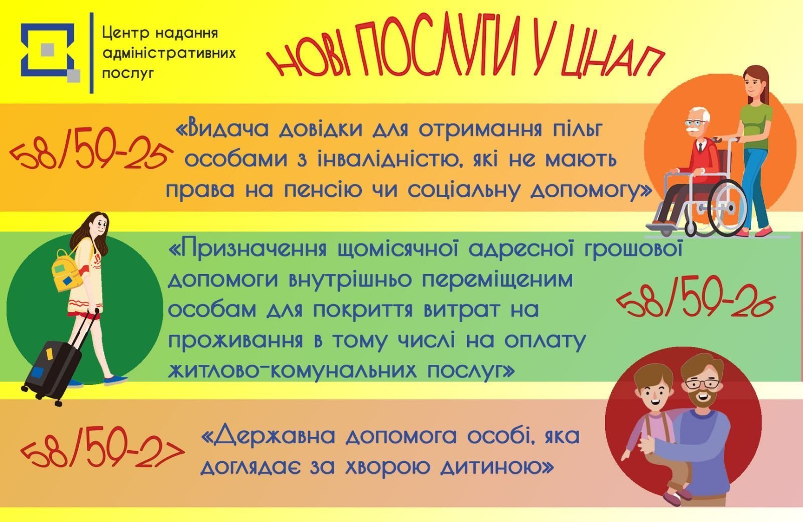 - 58/59-25 «Видача довідки для отримання пільг особами з інвалідністю, які не мають права на пенсію чи соціальну допомогу»;