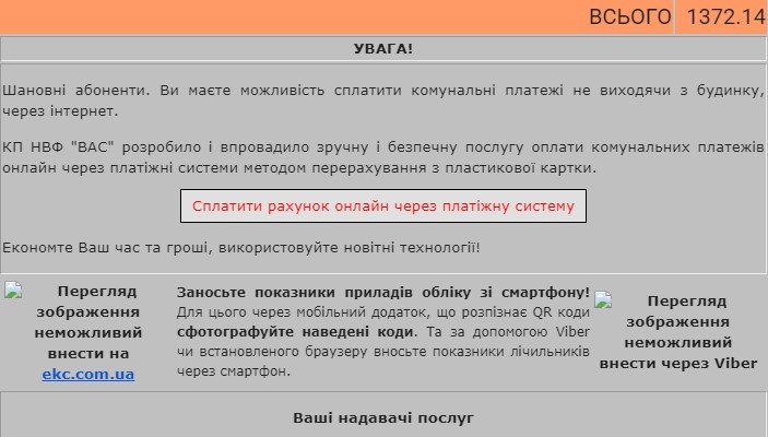 Для зручної оплати, отримання рахунку та введення показників, слід зареєструватися в ЄКС (на сайті Єдиної комунальної системи від фірми ВАС).