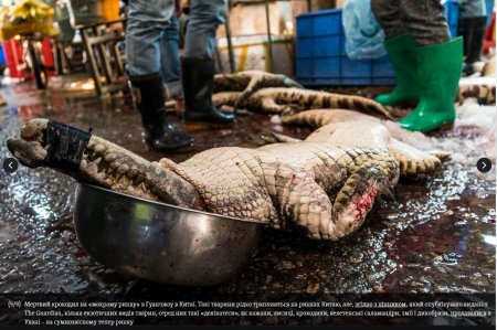 А вот мертвый и очень дорогой крокодил на рынке в Гуанчжоу. Его купят и съедят (фотогалерея Радио Свобода)
