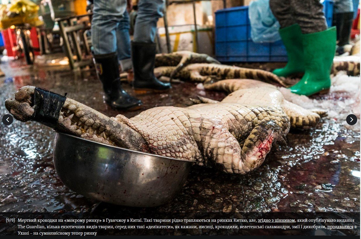 По рабочей версии, первичное инфицирование человека могло произойти на одном из «мокрых рынков» в Ухане (Китай). На этих рынках торгуют птицей, мясом домашних животных, овощами, фруктами – а также мясом диких животных: лисиц, крокодилов, саламандр, змей, летучих мышей и дикобразов. Один из предполагаемых путей заражения – во время разделки тушки кровь инфицированного дикого животного могла смешаться с кровью мясника (если у него были ранки или порезы на руках).
