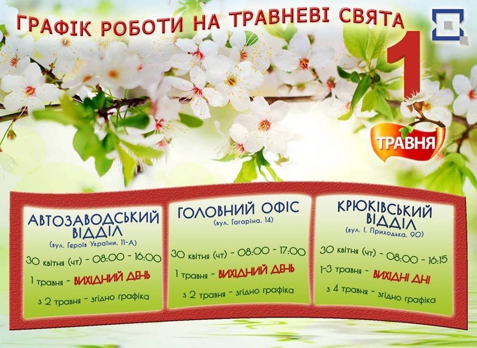 Кременчуцький ЦНАП опублікував графік роботи на травневі свята.