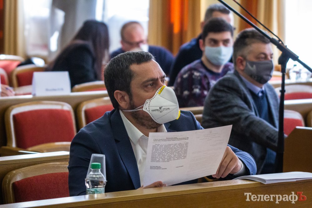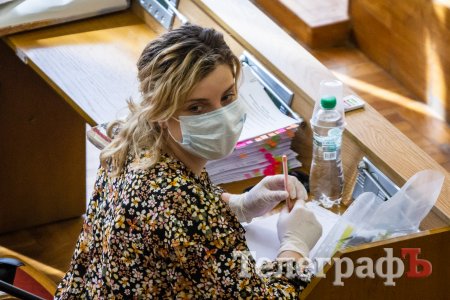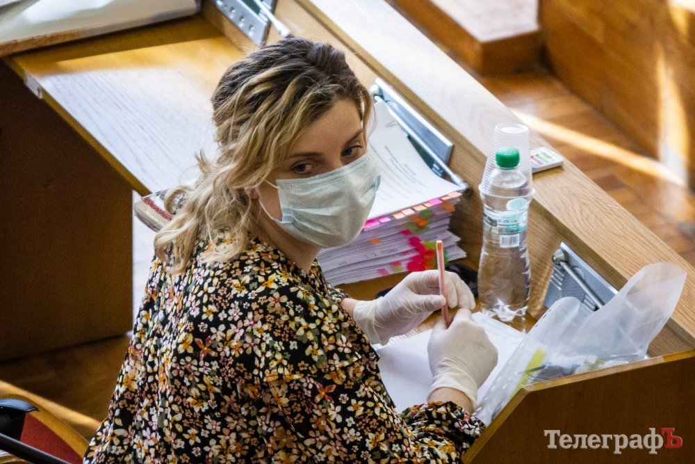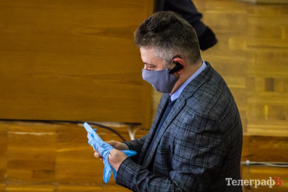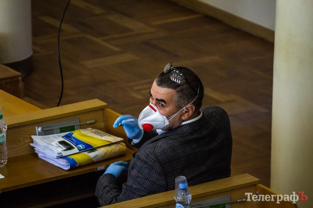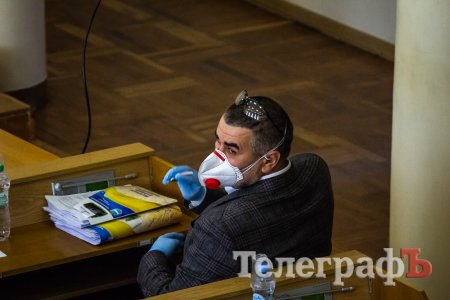 Сессия Кременчугского городского совета 23 апреля запомнится надолго и самим депутатам, и их избирателям. Сегодня они все в зале сидят в масках или респираторах, а некоторые – даже в очках и перчатках. Всем депутатам на входе измеряли температуру. Для тех, кто пришёл без средств защиты, выдавали «набор забывчивого депутата» – маску, перчатки и очки.