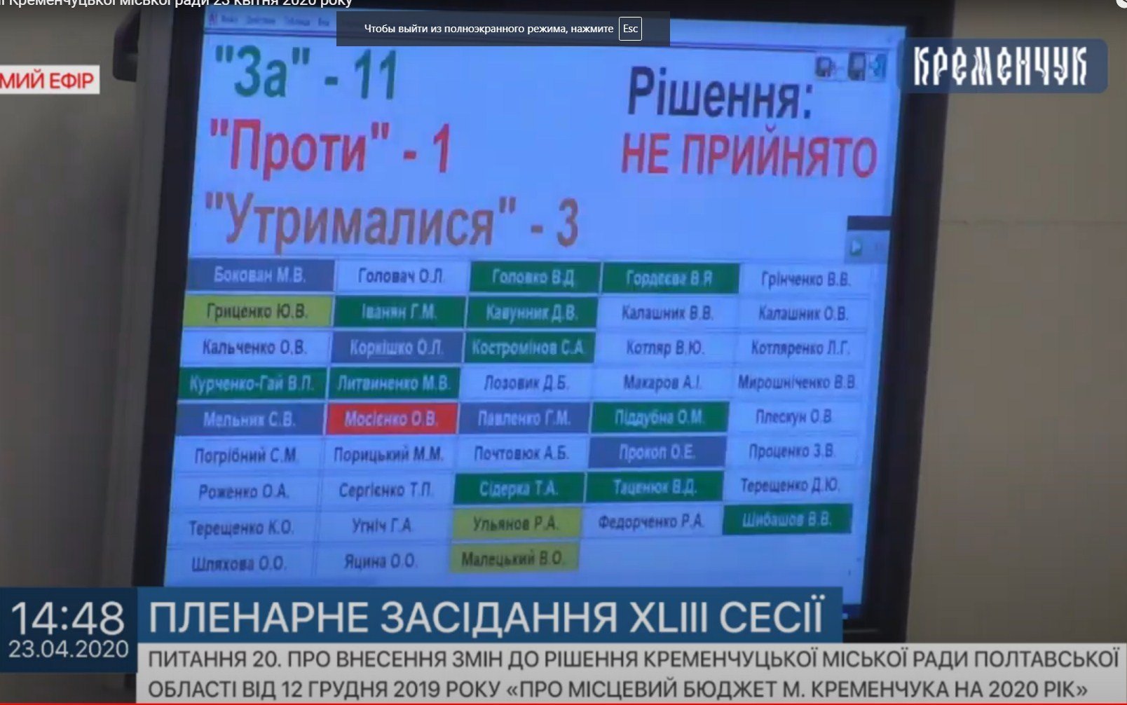 Мер поставив її пропозицію на голосування і сказав традиційне «прошу визначатися», що є сигналом для його групи підтримки не голосувати.