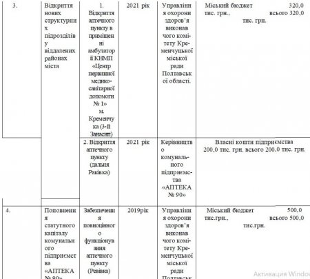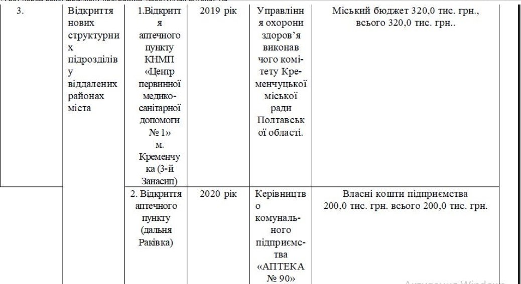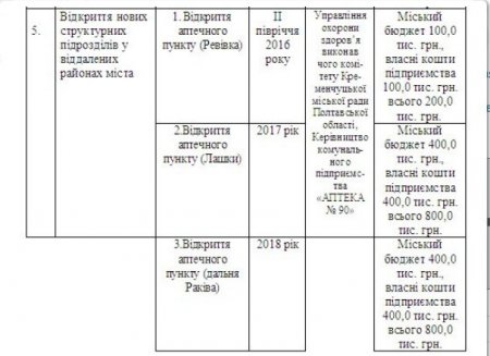 В 2016 году была принята городская программа «Доступна аптека». Один из её разделов – открытие коммунальных аптечных пунктов в отдаленных районах Кременчуга.